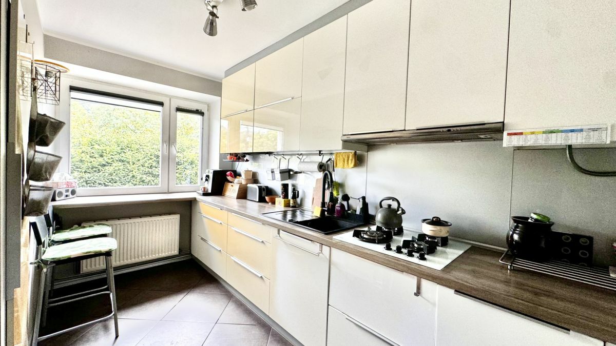- Osobna kuchnia z dużym oknem,